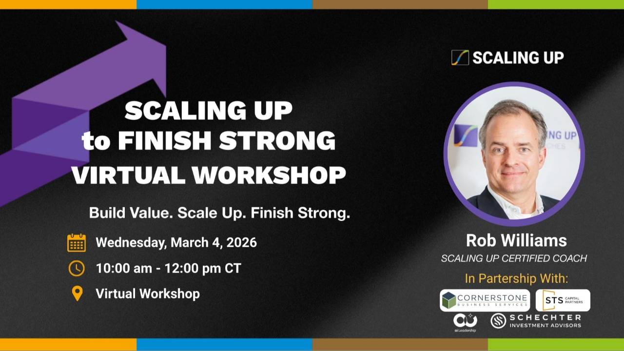 The virtual workshop is led by Scaling Up Coach Rob Williams, who holds an Advanced Scaling Up Certification in Exit & Valuation. You’ll also benefit from exclusive video insights from Verne Harnish, founder of the global Scaling Up coaching network.