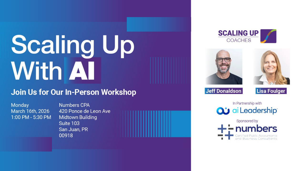 This workshop brings together the Scaling Up methodology and the most practical approaches to AI so you leave with something useful. You will not walk out with theories. You will walk out with a plan.