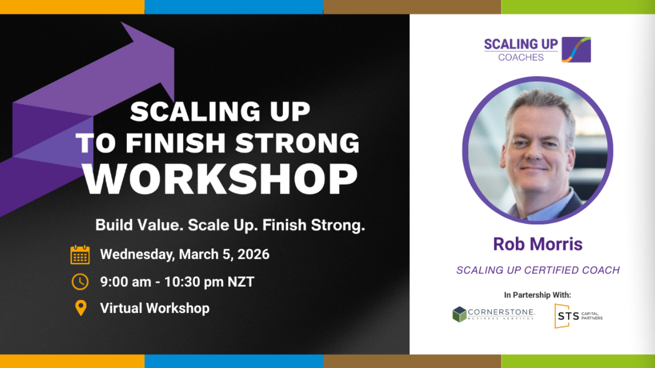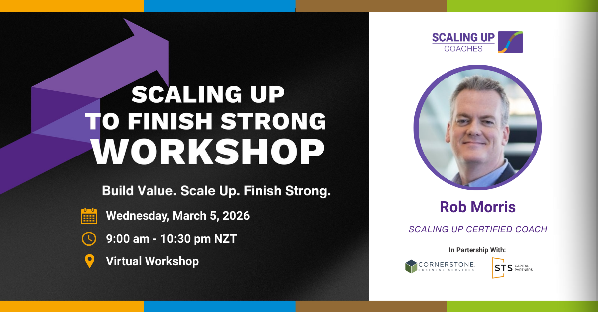 The virtual workshop is led by Scaling Up Coach Rob Morris who holds an Advanced Scaling Up Certification in Exit & Valuation. You’ll also benefit from exclusive video insights from Verne Harnish, founder of the global Scaling Up coaching network.