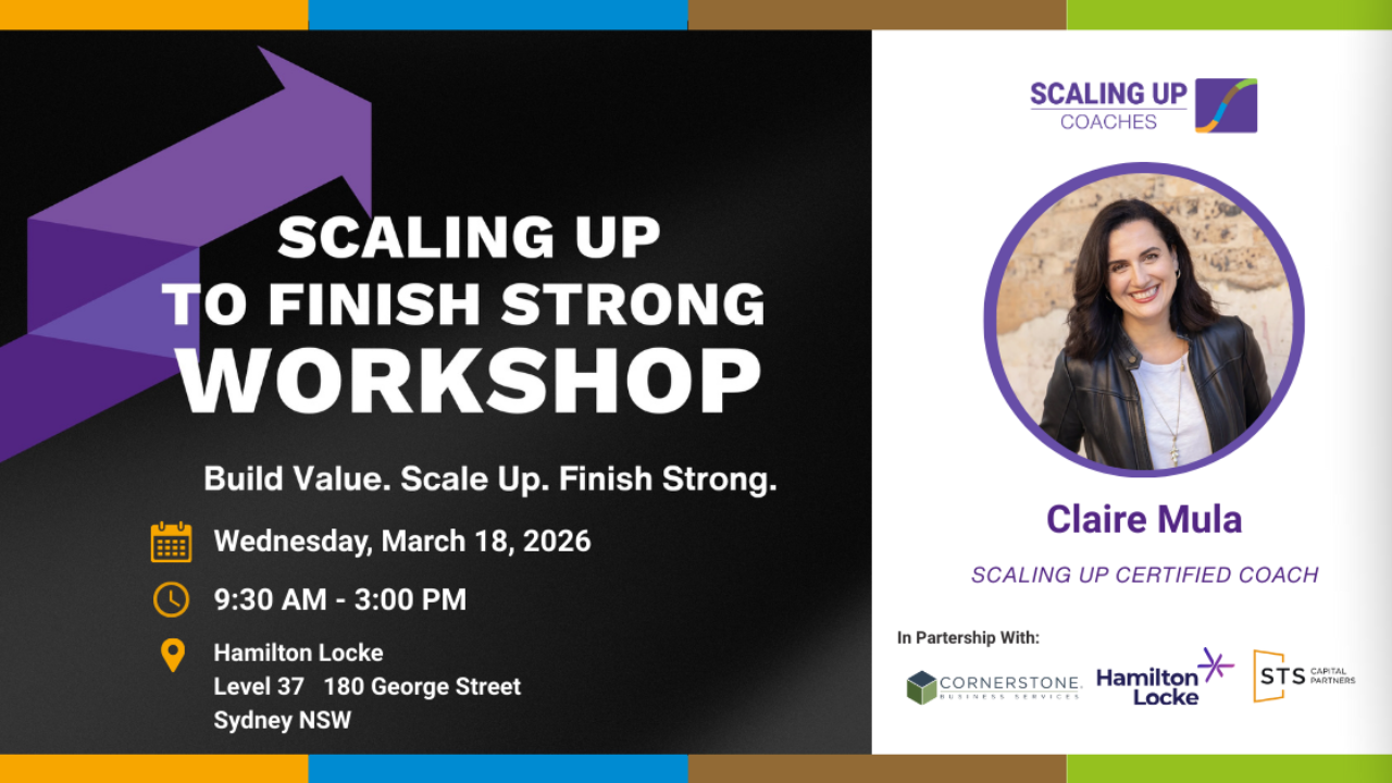 The workshop is led by Scaling Up Coach, Claire Mula , who holds an Advanced Scaling Up Certification in Exit & Valuation. You’ll also benefit from exclusive video insights from Verne Harnish, founder of the global Scaling Up coaching network, from Scott Bushkie, founder of Cornerstone Business Services, who brings decades of dealmaking experience and has guided companies through transactions worth hundreds of millions.